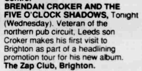 | 06.12 | CON | Brendan Croker | Leeds Poly | Leeds | UK | Gig for Ethiopia |