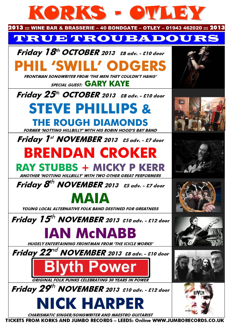 29.08 | Brendan Croker | The Chemic Tavern, Leeds | musical entertainment, posters 1 - 2 | ||
