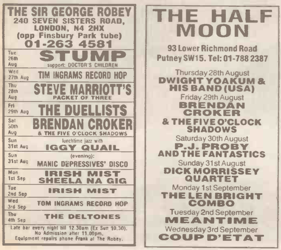 29.08 | CON | Brendan C. & The 5 O'clock Shadows | Half Moon, 93 Lower Richmond Rd | Putney | UK | Advert |