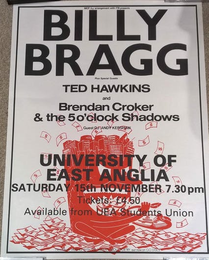 15.11 | CON | Brendan Croker, Ted Hawkins, Billy Bragg | University of East Anglia | Norwich | UK | poster |