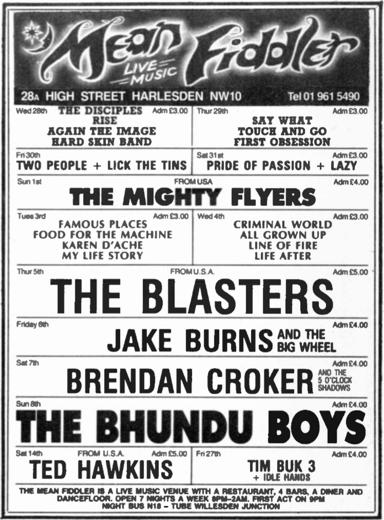 12.11 | CON | Brendan Croker, Ted Hawkins, Billy Bragg |