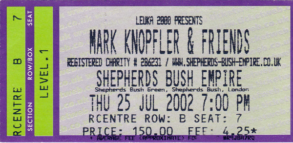 Guests: Mark Knopfler and Steve Phillips, each £22 |