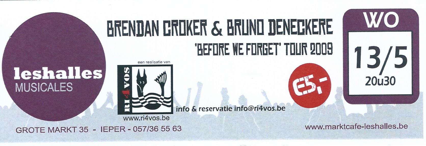 05.11 | Brendan Croker & Bruno Deneckere | Crossroads | Antwerp, Belgium | still a few tickets | |